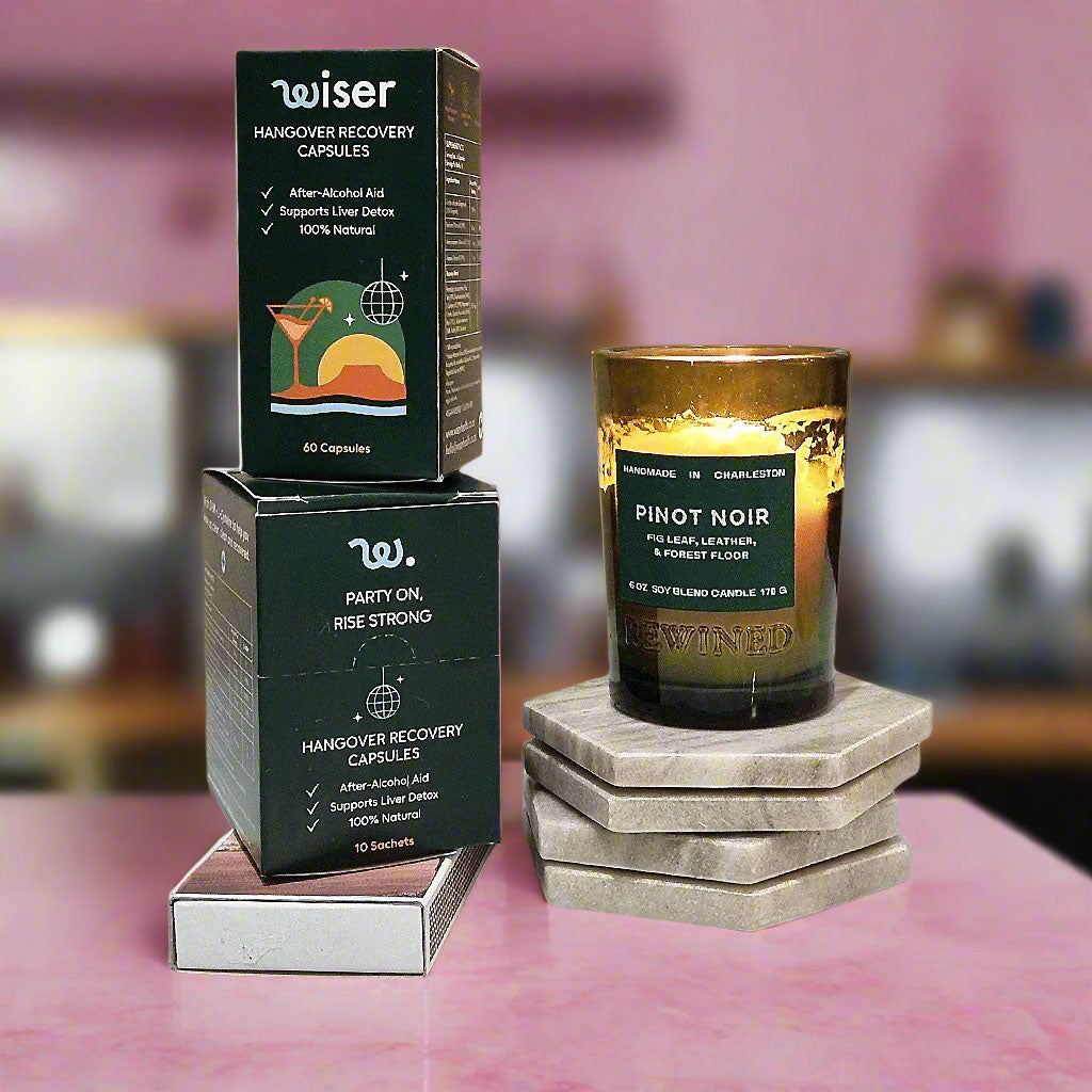 Wiser products are formulated with clinically supported ingredients like DHM, NAC, Milk Thistle, Magnesium, B-Vitamins, L-Theanine, and Rhodiola. They’re designed to support your liver, hydration, and energy—so you can recover faster and feel better, naturally. (Responsibly, of course.)